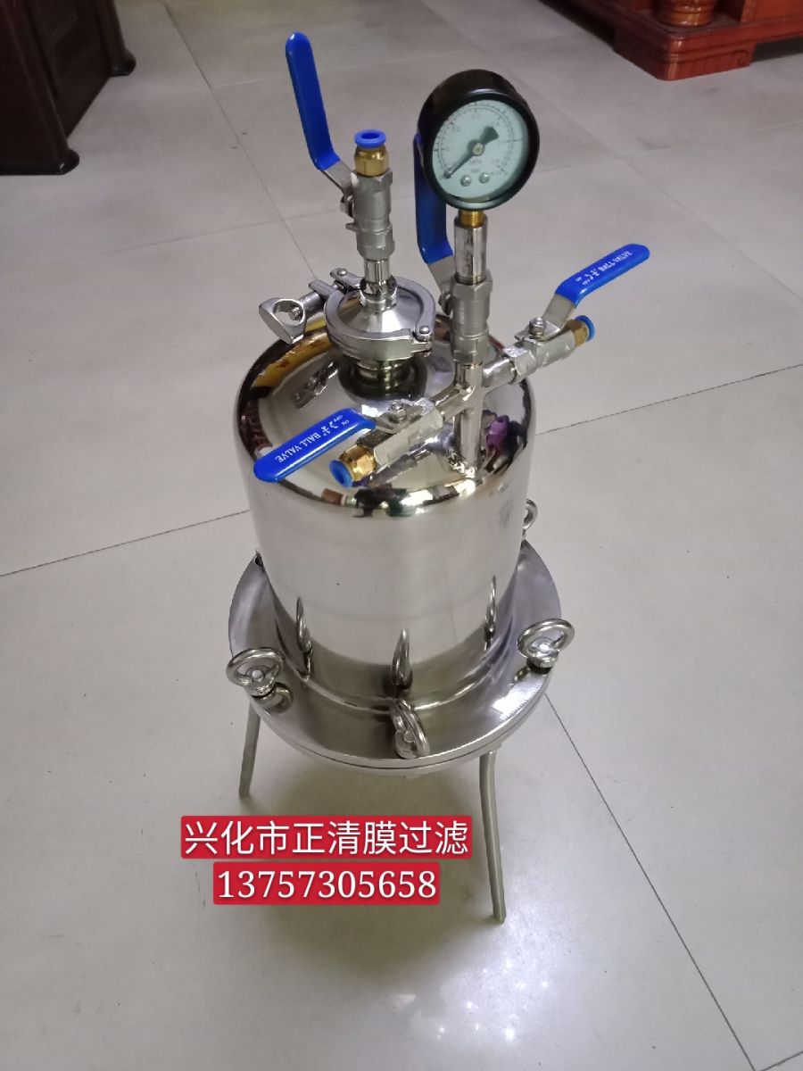 不銹鋼桶式正壓過濾器,適用于小容量科研、醫(yī)院、實驗室等單位,對各種液體的澄清除菌處理,本過濾器特別適用于各種微孔濾膜。可用真空泵抽濾或空氣壓縮機過濾,還可作板框多層過濾器和封閉式液體配制循環(huán)機組合剩液過濾,節(jié)約原材料的應用,又可和一般加壓泵配套使用,能達到一機多用的優(yōu)點,是科研單位不可缺少的設備之一。